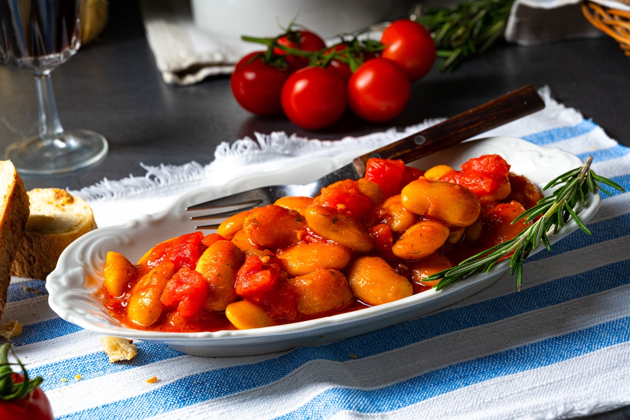 Gigantes Plaki ist ein traditionelles, griechisches Gericht und wird aus Tomatensoße und weißen Bohnen zubereitet. In Griechenland und in griechischen Restaurant sind die Bohnen mit Tomatensoße eine beliebte Vorspeise, die besonders sättigend und nahrhaft ist. Für die Zubereitung können Sie kleine und große, weiße Bohnen und weiteres Gemüse verwenden. Serviert wird die Vorspeise mit leckerem Weißbrot und Fetakäse. Das Gericht ist nicht nur nahrhaft, sondern auch gesund. Die Vorspeise enthält viele Vitamine, Ballaststoffe, Antioxidantien und Proteine, die für eine ausgewogene Ernährung besonders wichtig sind. Durch das Garen im Backofen wird das Gericht aromatisch und Sie können Gigantes Plaki kalt und warm essen. Für das Rezept benötigen Sie kleine oder große, weiße Bohnen, Zwiebeln, frische Tomaten oder passierte Tomaten aus der Dose, Karotten, Staudensellerie, Knoblauch, Lorbeerblätter, Olivenöl und verschiedene Gewürze. Mit Salz, Pfeffer, Oregano, Thymian, Petersilie und Paprikapulver können Sie das Gericht abschmecken und aromatisieren.